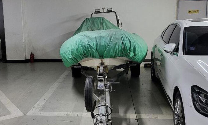지난 25일 한 온라인 커뮤니티에는 '아파트 지하 주차장에 보트가 자리 잡았네요'라는 제목의 글이 올라왔다.