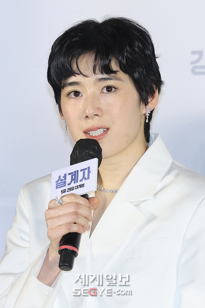 배우 정은채가 29일 오전 서울 용산 CGV에서 열린 영화 ’설계자’의 제작보고회에 참석해 인사말을 하고 있다.