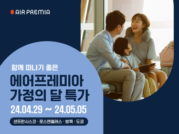 에어프레미아 관계자는 “가정의 달을 맞아 고객에게 감사하는 마음을 담아 이번 행사를 기획했다”며 “에어프레미아와 함께 즐겁고 행복한 여행을 계획하시길 바란다”고 말했다.