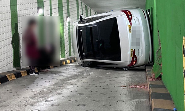 이 사고로 지하주차장 입구가 꽉 막히면서 수 시간 동안 차량진입이 금지됐다.