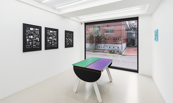 홍승혜와 추미림이 한남동 디스위켄드룸(대표 김나형)에서 2인전을 연다. ‘파트너스 데스크(Partner’s Desk)’라는 제목으로 5월18일까지 진행되는 전시다. 전시명은 두 사람이 마주 앉는 대면용 책상을 가리키는 단어다. 홍승혜가 제작한 동명의 가구가 1층 전시장 중앙에 놓여 기획 의도를 상징적으로 드러내 보여 준다.