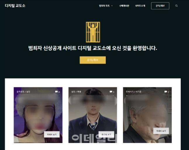 범죄 혐의자 신상을 무단으로 공개하는 웹사이트 ‘디지털 교도소’가 최근 4년만에 다시 등장했다. 운영자는 학교폭력, 전세사기, 음주운전 등 혐의로 처벌받은 사람 뿐 아니라 범죄자에 대한 형량을 낮춘 전현직 판사들의 신상까지 공개해 논란이 일고 있다. 이 사이트에 얼굴이 공개된 대학생이 목숨을 잃는 일도 발생한 바 있어서 법의 테두리를 벗어난 개인 또는 집단의 ‘사적 제재’에 따른 부작용이 큰 만큼 우려의 시각이 있다.
