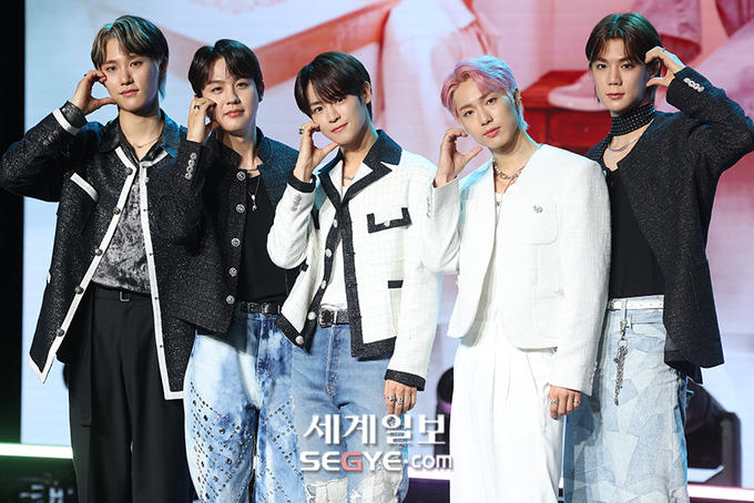 그룹 어센트(ASC2NT)가 7일 오후 서울 강남구 청담동 일지아트홀에서 열린 첫 번째 싱글 앨범 'Expecting Tomorrow(익스펙팅 투모로우)'의 쇼케이스에 참석해 포즈를 취하고 있다.