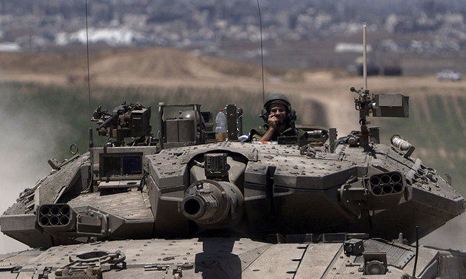 16일(현지시각) 이스라엘군 전차가 가자지구를 향해 이동하고 있다. AP뉴시스
