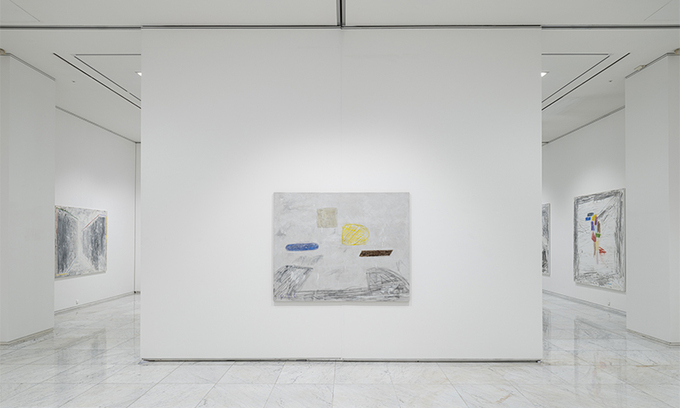 회색조의 화면은 독일의 잿빛 하늘을 연상시키는 동시에 먹이 스민 한국의 수묵화를 닮았다. 전시를 기획한 맹지영(47) 큐레이터의 글에 따르면 “매 순간 달라지는 빛처럼 시간의 흐름에 따라 변화하는 명암은 그림 안에서 사라지고 드러나면서 특유의 대기감을 형성”한다. 다양한 색채 및 농담의 획들이 그 대기를 부유하며 한데 모여 기하학적 도형의 형상을 이루었다가 다시 흩어져 형태 모호한 선과 면으로서 소분되기를 반복한다.