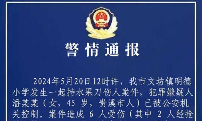 현지 주민 판모(45)씨가 학교에 난입해 과도로 교내에 있던 사람들에게 마구 휘둘렀고 이 과정에서 2명이 칼에 찔려 숨졌다. 다른 4명은 다쳤으나 생명에는 지장이 없는 것으로 알려졌다.