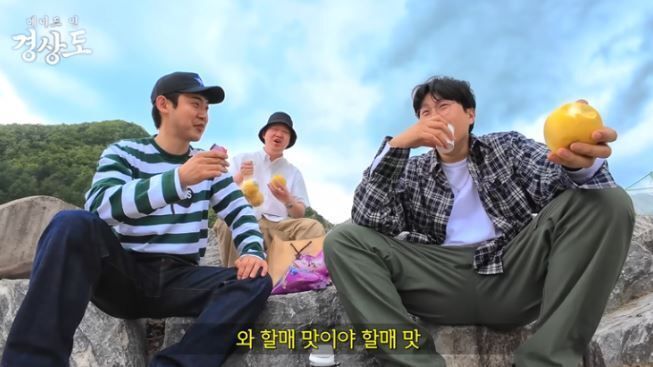피식 대학 멤버들이 경북 영양에 방문해 지역에서 판매하는 블루베리를 먹으며 ‘할매 살 뜯어먹는 맛이’라고 비하하는 장면. 유튜브 채널 ‘피식대학’ 캡처