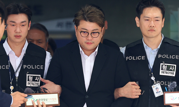 음주 뺑소니 혐의를 받는 가수 김호중이 24일 구속 전 피의자 심문(영장실질심사)을 마친 뒤 서울 서초구 서울중앙지법을 나와 호송차로 향하고 있다. 연합뉴스