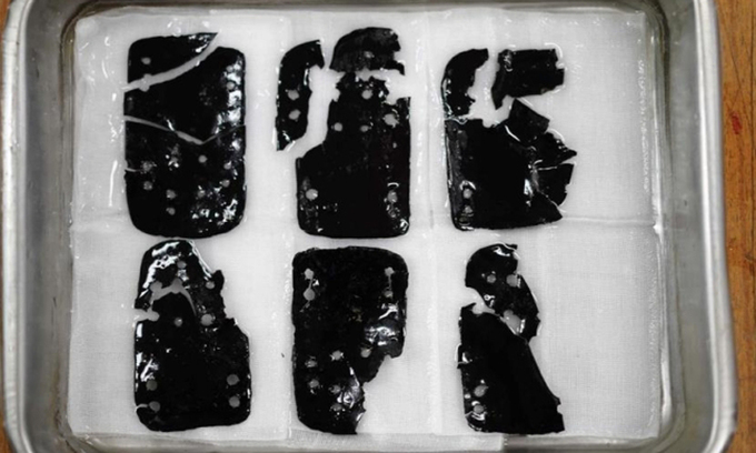 백제시대에 만들어진 전북 익산토성 남쪽에 있는 집수시설에서 출토된 칠피 갑옷 조각. 국가유산청 제공
