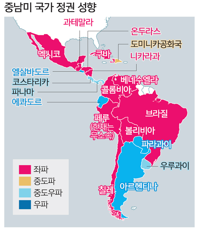 다만 지난해 말부터 핑크 타이드가 꺾이고 있다는 전망이 나온다. 좌파 정권이 연쇄적으로 사라지고 극우 정당들이 집권하는 ‘파 라이트 타이드(Far Right Tide·극우 물결)’ 현상이 뚜렷해지고 있기 때문이다.