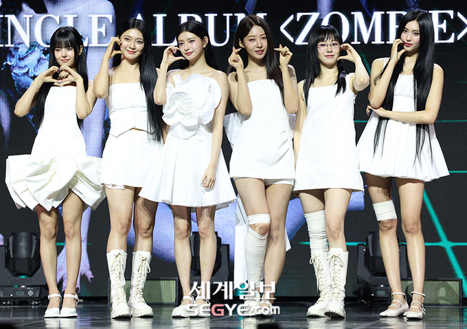 그룹 에버글로우가 10일 오후 서울 용산구 한남동 블루스퀘어에서 열린 다섯 번째 싱글 앨범 'ZOMBIE(좀비)'의 쇼케이스에 참석해 포즈를 취하고 있다.