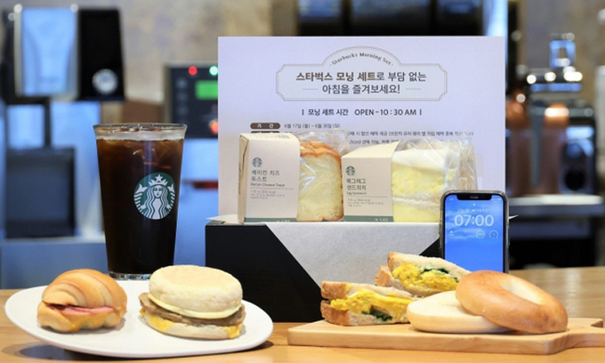 스타벅스는 아침 식사를 챙기는 고객들의 부담을 덜어주기 위해 한시적으로 ‘모닝 세트’를 선보인다고 13일 밝혔다.