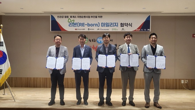 충북도는 13일 한국도로공사 충북본부, 충북휴게소장단, 그린고라운드, 그린다와 도내 고속도로 휴게소를 중심으로 한 친환경 자원순환 사업 협약을 체결했다.