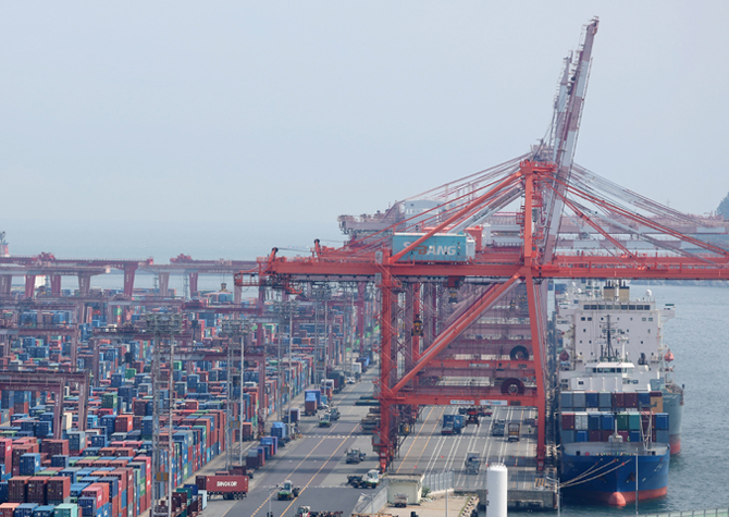 부산항 신선대부두에 컨테이너가 가득하다. 연합뉴스