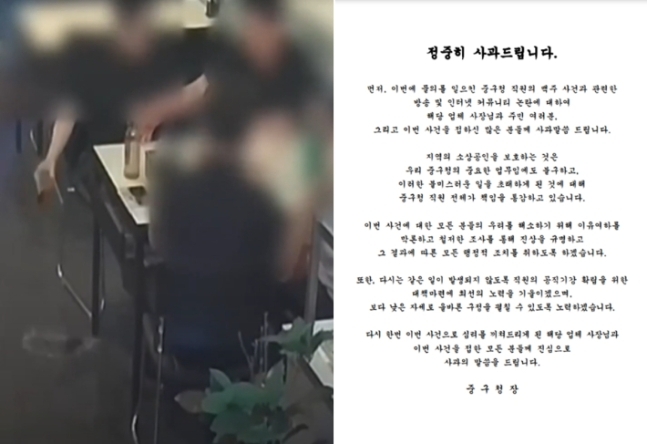 류규하 중구청장 명의의 사과문에서 중구는 "물의를 일으킨 직원의 맥주 사건과 관련해 업체 사장님과 주민 여러분, 이번 사건을 접하신 많은 분께 사과 말씀드린다"고 했다.