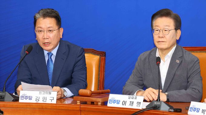 지난 12일 지명직 최고위원으로 임명된 더불어민주당 강민구 신임 최고위원(대구시당위원장)이 19일 국회에서 열린 최고위원회의에 참석해 "민주당의 아버지는 이재명 대표"라고 말했다.