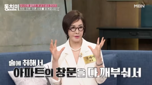 MBN ‘속풀이쇼 동치미’가 19일 공개한 영상에서 유혜리는 결혼과 이혼에 얽힌 사연을 전했다.