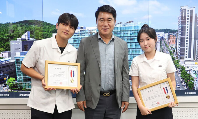 비탈길에서 미끄러지는 화물차를 온몸으로 멈춰 세워 참사를 막은 서울 관악구 당곡고등학교 2학년 김연준(17)군·김윤서(17)양이 관악구로부터 ‘모범 선행 청소년 표창장’을 받았다.