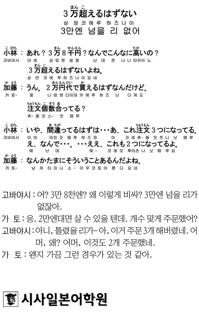 [시사일본어학원의 초단기 일본어 회화] 3만엔 넘을 리 없어 입력 : 2024-06-26 18:11:31 수정 : 2024-06-26 18:11:30 구글 네이버 유튜브 Copyright ⓒ 세계일보. 무단 전재 및 재배포 금지 세계일보