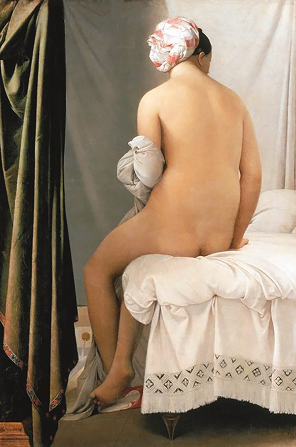 다비드의 제자였던 장 오귀스트 도미니크 앵그르도 선과 데생을 강조했고, 절제된 형식을 중시했다. 그림 소장자였던 발팽송의 이름을 딴 ‘발팽송의 목욕녀’에서 그런 특징이 보인다. 간결한 선과 면의 단순한 형태로 여인의 뒷모습을 압축해서 나타냈다. 한쪽으로 가지런히 젖힌 커튼 아래 틈 사이로 목욕물이 흘러나오는 걸 보니 이제 막 목욕을 하기 위해 옷을 벗은 모습 같다. 목욕물 소리 외에는 어떤 소리도 없는 평온한 장면이어서인지 바라보는 것만으로도 차분해지는 신고전주의 작품이다.