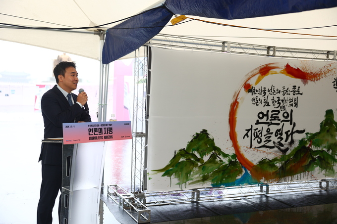 한국편집기자협회(협회장 김창환, 이하 협회)와 종로문화재단(이하 재단)이 언론의 중심 종로 광화문광장 놀이마당에서 한국편집기자협회 창립 60주년 기념 특별전 ‘언론의 지평’이 개막했다.