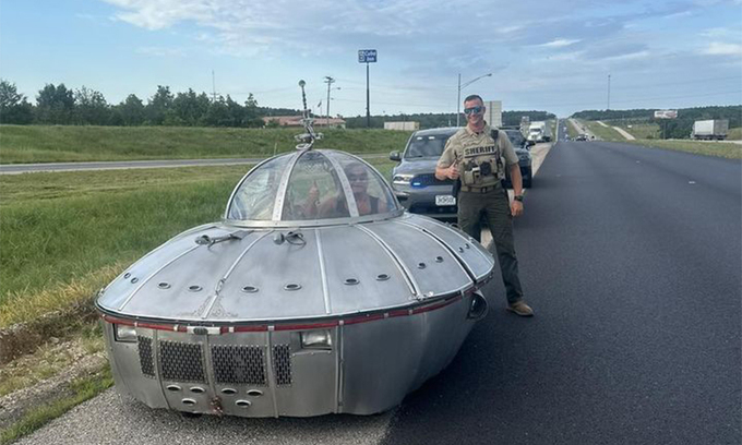 미국의 한 고속도로에서 미확인비행물체(UFO) 모양의 차량이 경찰 단속에 적발돼 눈길을 끈다.