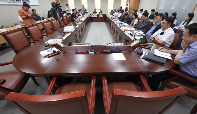 4일 정부세종청사에서 사용자위원 9명이 모두 빠진 ‘반쪽’ 최임위 제8차 전원회의가 열렸다. 2일 열린 7차 전원회의 당시구분(차등) 적용 표결 과정에서 일부 근로자위원들이 투표 방해 행위를 벌여 사용자위원들이 불참을 선언했다. 최저임금법상 회의 성립을 위한 정족수 규정은 따로 없다. 다만 의결을 위해서는 근로자위원과 사용자위원 각 3분의 1 이상이 출석해야 해서 이날 회의는 의결 없이 빈손으로 끝났다.