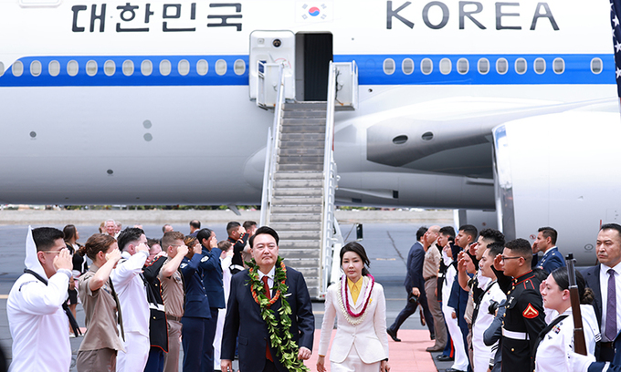 윤 대통령과 부인 김건희 여사는 이날 오후 호놀룰루 히캄 공군기지에 도착했다.