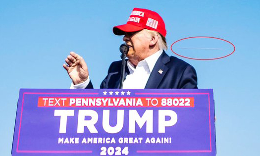 뉴욕타임스(NYT)는 13일(현지시간) 도널드 트럼프 전 미국 대통령을 향해 날아오는 총알 궤적이 찍힌 사진을 최초로 공개했다.