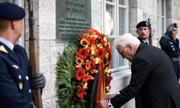20일(현지시간) dpa 통신에 따르면 제2차 세계대전 도중 독일 군인 일부가 아돌프 히틀러 총통 암살과 나치 정권 전복을 시도한 사건 80주년을 맞아 베를린 시내 국방부 청사 마당(벤들러블록)에서 기념행사가 개최됐다. 프랑크발터 슈타인마이어 대통령, 올라프 숄츠 총리 등 독일 정부 요인들이 대거 참석해 암살이 실패로 돌아간 뒤 잔인하게 처형당한 군인들을 기렸다.