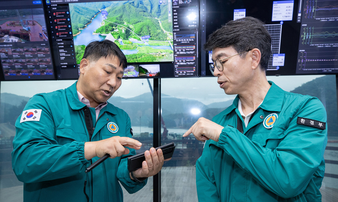 김완섭 환경부 장관(오른쪽)이 5일 전남 순천 주암댐을 방문해 관계자로부터 운영 현황을 보고받고 있다. 김 장관은 이후 전남 순천시, 화순군, 강진군 기후대응댐 후보지 3곳의 지방자치단체장들과 면담을 갖고 해당 지역에서 댐 건설에 적극적인 환영 의사를 표명한 데 대해 감사의 뜻을 표했다. 김 장관은 “기후대응댐이 지역 발전에도 도움이 될 수 있도록 주변 지역 지원 예산을 대폭 상향하겠다”면서 “또 주민들과 적극적으로 소통하며 지역과 함께하는 댐을 만들어 가겠다”고 강조했다.