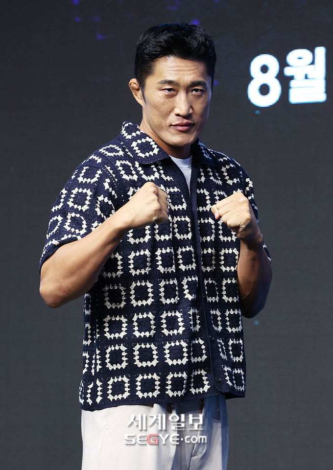 방송인 김동현이 6일 서울 여의도 콘래드 호텔에서 진행된 디즈니+ 오리지널 예능 ‘더 존: 버텨야 산다 시즌3’ 제작발표회에 참석해 포즈를 취하고 있다.