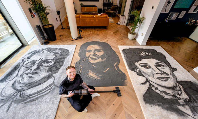 영국 유명 팝아트 초상화 작가인 네이선 와이번이 ‘삼성 비스포크 제트 AI(인공지능) 청소기’의 ‘액티브 듀얼 브러시’와 ‘슬림 LED 브러시+’로 먼지를 빨아들이는 방식으로 제작한 초상화를 선보이고 있다. 와이번 작가는 삼성전자가 지난달 영국인 대상 설문조사를 통해 선정한 10대 ‘청소 아이콘’을 초상화로 그렸다. 사진은 미세스 다웃파이어(왼쪽부터), ‘청소의 여왕’ 미세스 힌치, 메리 포핀스.