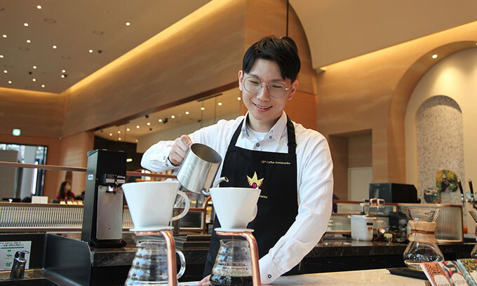 스타벅스 코리아 바리스타가 12일 커피를 핸드 드립 방식으로 추출하고 있다. 이날 스타벅스 코리아는 고객들을 대상으로 커피 감별, 핸드 드립 등을 교육하는 ‘리저브 프리미엄 클래스’를 진행한다고 밝혔다. 참가비가 있는 이 클래스는 스타벅스에서 최고 커피 전문가로 불리는 RCM(권역 커피 전문가)과 DCM(지역 커피 전문가)이 진행한다.