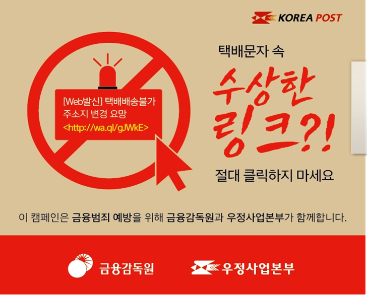 이는 최근 택배회사를 명의로 한 휴대폰 문자를 보내 금융정보 탈취 시도가 일어나는 사례들이 발생하고 있음에 따른 조처다. 사기범은 택배회사 명의로 ‘잘못된 주소 정보로 택배 배송이 일시 중단되었으니, 링크를 클릭 후 정보를 업데이트하세요’는 휴대폰 문자를 피해자에게 발송하고, 피해자가 링크를 클릭하자 휴대폰에 악성앱이 설치, 사기범은 악성앱을 통해 탈취한 개인정보 및 금융정보로 금융거래를 실행하는 사례가 발생했다.