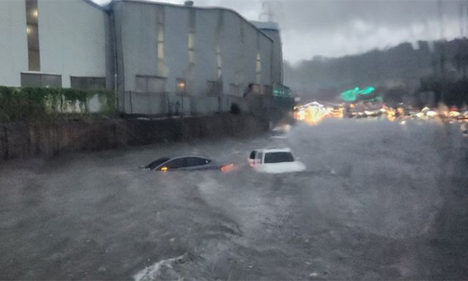 울산, 최대 142㎜ '물폭탄'…차량 순식간에 침수
