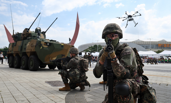 드론을 지상에 안정적으로 추락시키기 위해 수도방위사령부의 드론 재밍조치팀과 대공방어를 담당하는 30㎜ 차륜형 대공포 ‘천호’와 대드론장비, 열상감시장비가 투입돼 경기장 일대를 에워쌌다. 수방사의 대드론장비는 전자광학 추적 시스템을 통해 드론, 무인기 등 비행체를 탐지하고 타격한다. 드론은 큰 충격 없이 지상에 낙하했지만, 폭발물이 설치됐다면 여전히 폭발 가능성이 남아 있었다.