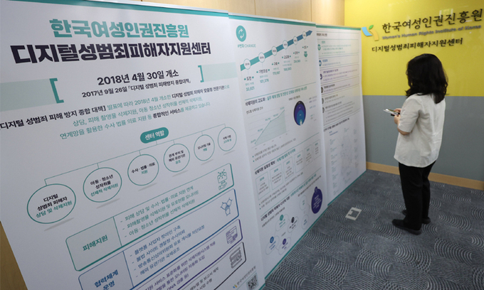 여가부도 관련 법 정비 등이 필요하다는 입장이다. 이날 강도현 과학기술정보통신부 제2차관과 함께 디지털성범죄피해자지원센터를 찾은 신영숙 여가부 차관은 “가장 큰 문제는 텔레그램 등 해외에 서버를 둔 사업자”라며 “대부분의 국내 플랫폼은 피해 신고가 들어오면 삭제나 노출 제한 조처를 내리거나 수사기관과 연계해 잡을 수 있는데 해외(플랫폼)는 그렇지 못하다”고 지적했다.