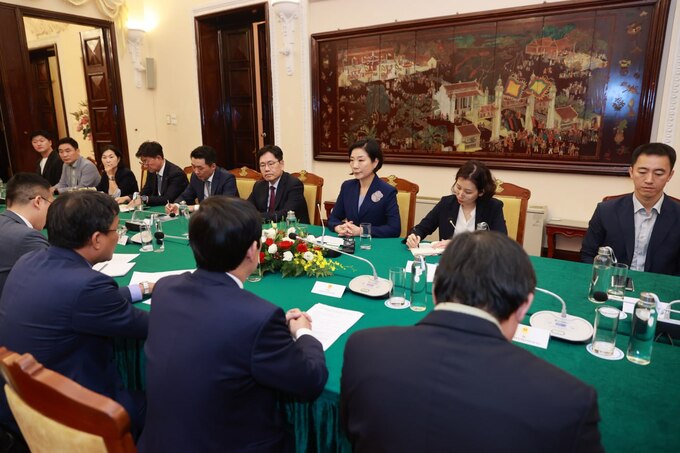 오영주 중소벤처기업부 장관(오른쪽 세 번째)이 28일 하노이 베트남 정부 영빈관에서 응우엔 밍 부 베트남 외교부 차관을 만나 양국의 혁신 중소벤처기업과 함께 교류·협력 방안에 대해 논의하고 있다. 중소벤처기업부