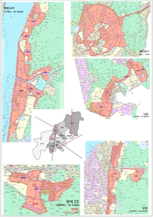 시는 당초 △해운대 1, 2 △화명2 △다대 일대 △만덕·화명·금곡 일대 △개금·학장·주례 일대를 노후계획도시 대상 지역 후보지로 선정했으나, 최근 국토부의 노후계획도시 기본방침이 공개됨에 따라 동일생활권역인 화명·금곡 일대를 연계하고 만덕지역을 별도로 분리했다.