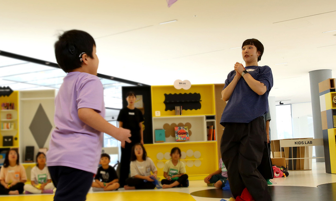 KB금융그룹은 서울 삼성문화재단 리움미술관과 협업해 ‘늘봄학교’ 청각장애 초등학생을 위한 감각체험 프로그램인 ‘콘택트먼트(C♡NTACT+MENT)’를 지난 28일 진행했다고 29일 밝혔다. 콘택트먼트는 시각에 의존해 살아가야 하는 청각장애 어린이가 몸의 고유한 감각에 집중해 신체 감각의 확장을 경험하고 잠재된 창의성을 발휘할 수 있게 이끌어주는 프로그램이다.