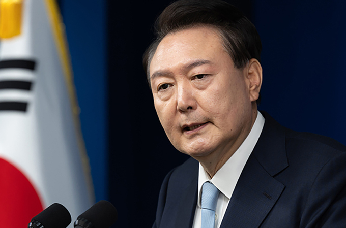 윤석열 대통령이 29일 서울 용산 대통령실청사 브리핑룸에서 열린 국정브리핑 및 기자회견에서 취재진의 질문에 답하고 있다. 뉴스1