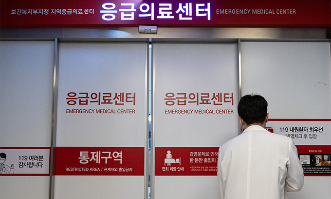 서울 소재의 2차 종합병원 응급의료센터로 의료진이 들어가고 있다. 뉴스1