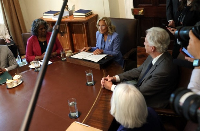 조 바이든 미국 대통령 부인 질 바이든 여사가 바이든 행정부 출범 후 처음으로 국무회의에 배석했다. 백악관의 역점 사업들 중 하나인 여성 건강 증진 프로젝트와 관련해 행정부가 그간 쌓아 온 치적을 평가하기 위해서인데, 오는 11월 대선을 앞두고 여성 유권자들의 표심을 공략하기 위한 전략의 일환으로 풀이된다.