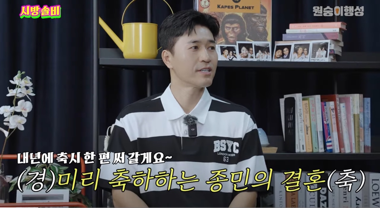 지난 20일 유튜브 채널 ‘시방솔비’에는 ‘뇌순남 vs 뇌순녀 의식의 흐름’이라는 제목의 영상이 올라왔다. 영상에서 김종민이 게스트로 출연해 솔비와 대화를 나누면서 11살 연하 여자친구와의 결혼에 대해 언급했다.