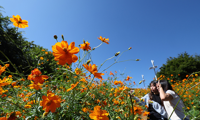 가을 만끽 입력 : 2024-09-23 19:28:33 수정 : 2024-09-23 19:28:33 남정탁 기자 구글 네이버 유튜브 맑고 선선한 가을날씨를 보인 23일 서울 송파구 올림픽공원 들꽃마루를 찾은 시민들이 만개한 황화코스모스를 보며 가을을 만끽하고 있다. /2024.09.23 남정탁 기자 맑고 선선한 날씨를 보인 23일 서울 송파구 올림픽공원 들꽃마루를 찾은 시민들이 만개한 황화코스모스를 보며 가을 정취를 만끽하고 있다. 이번 주 전국의 기온은 아침 12∼23도, 낮 24∼30도로 예보됐다. 남정탁 기자 Copyright ⓒ 세계일보. 무단 전재 및 재배포 금지 세계일보 남정탁