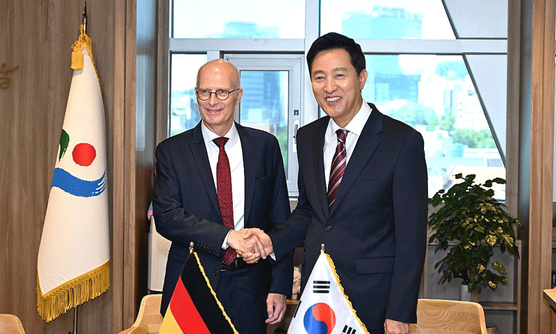 오 시장은 이날 시청 집무실에서 함부르크 시장이 이끄는 대표단을 만났다.