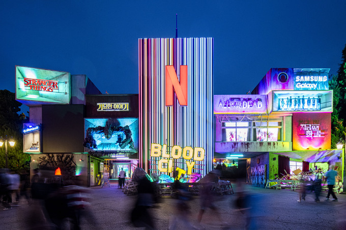 지난 6일부터 11월17일까지 두 달여간 운영하는 에버랜드 블러드시티에서는 ‘지금 우리 학교는’, ‘기묘한 이야기’ 등 넷플릭스 인기 시리즈를 체험할 수 있다.