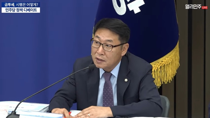 김 의원은 24일 서울 여의도 국회 본관에서 ‘행복하고 정의로운 대한민국, 금융투자소득세 시행은 어떻게?’를 주제로 열린 정책 토론회에 같은 당 이강일·김성환 의원과 함께 ‘금투세 시행팀’으로 나왔다.