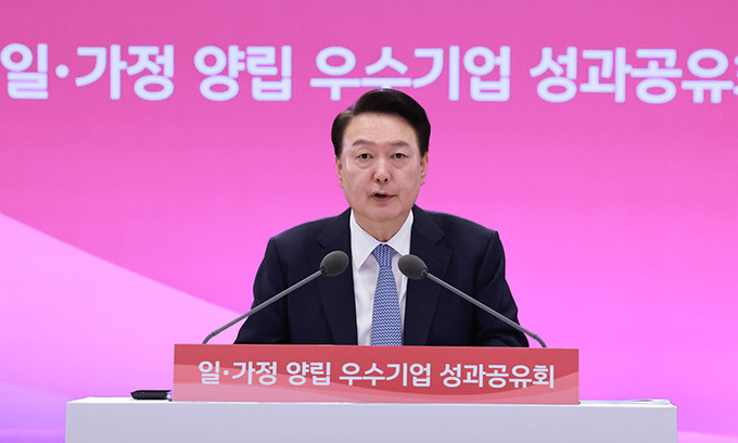 윤석열 대통령은 25일 "일·가정 양립에 앞장서고 있는 우수 중소기업에 대해서는 세제 혜택을 검토하고, 국세 세무조사 유예와 같은 방안도 강구하겠다"고 말했다.